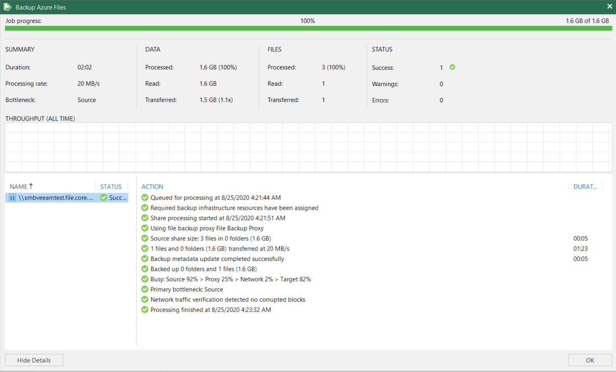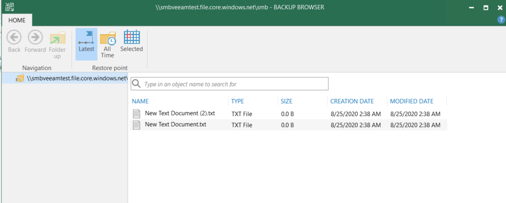 Looks good to me! As you can see above, the File Share has been backed up successfully and is ready to be restored.