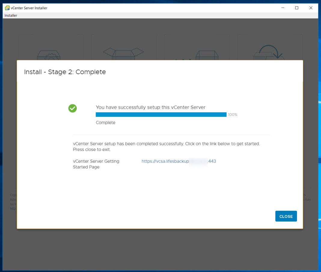 Thats it! If everything has gone according to plan you should see the “Stage 2 Complete” page with a link to your newly deployed VCSA.