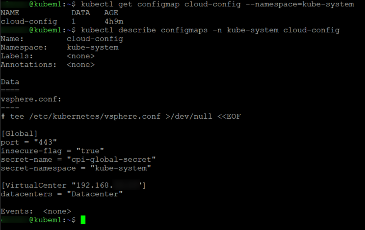 kubectl create configmap cloud-config --from-file=vsphere.conf --namespace=kube-system