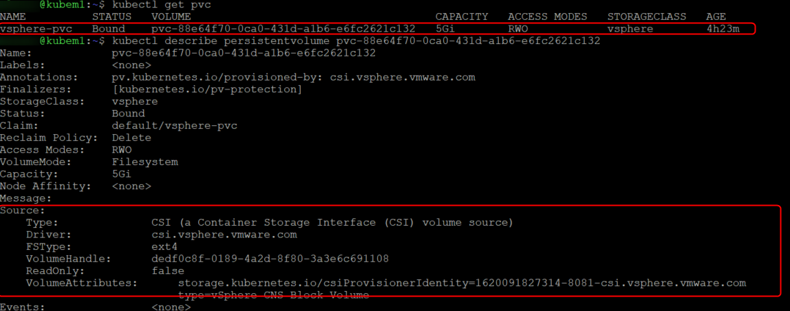 kubectl create secret generic vsphere-config-secret --from-file=csi-vsphere.conf --namespace=kube-system