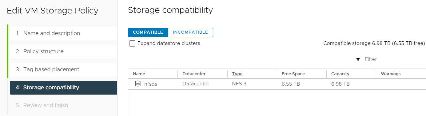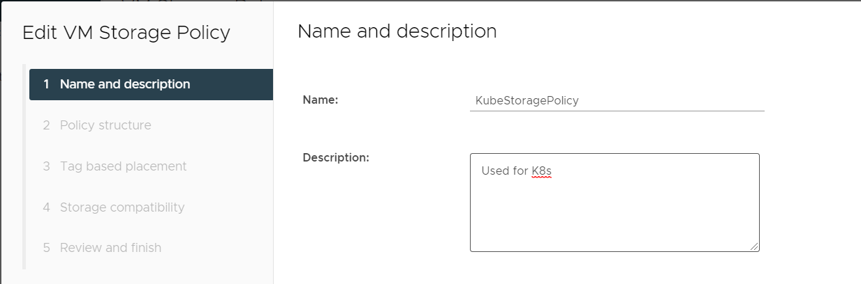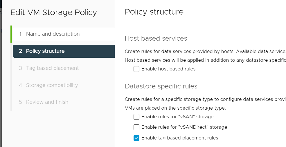 Next up we need to create our VM storage Policy, This is required so when we create the CSI later on it knows which datastores it’s allowed using for Kubernetes. To accomplish this I chose to use tags to identify the datastores as my datastore is a NFS datastore coming off my home synology NAS.