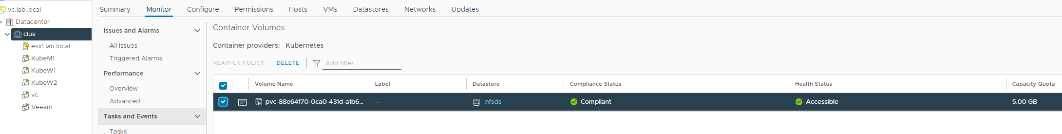 If we did everything correctly we should now be able to see the volume in vCenter.