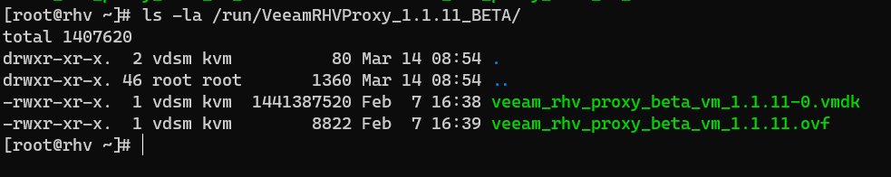 ls /run/VeeamRHVProxy_1.1.11_BETA/ # confirm files are present