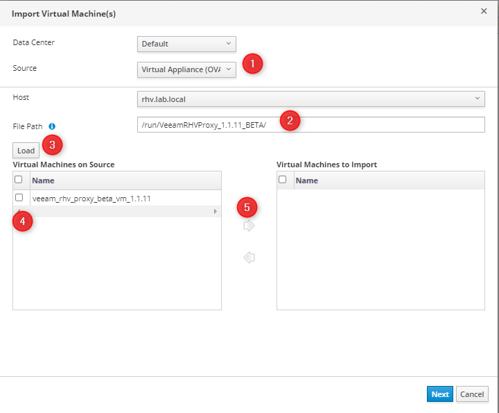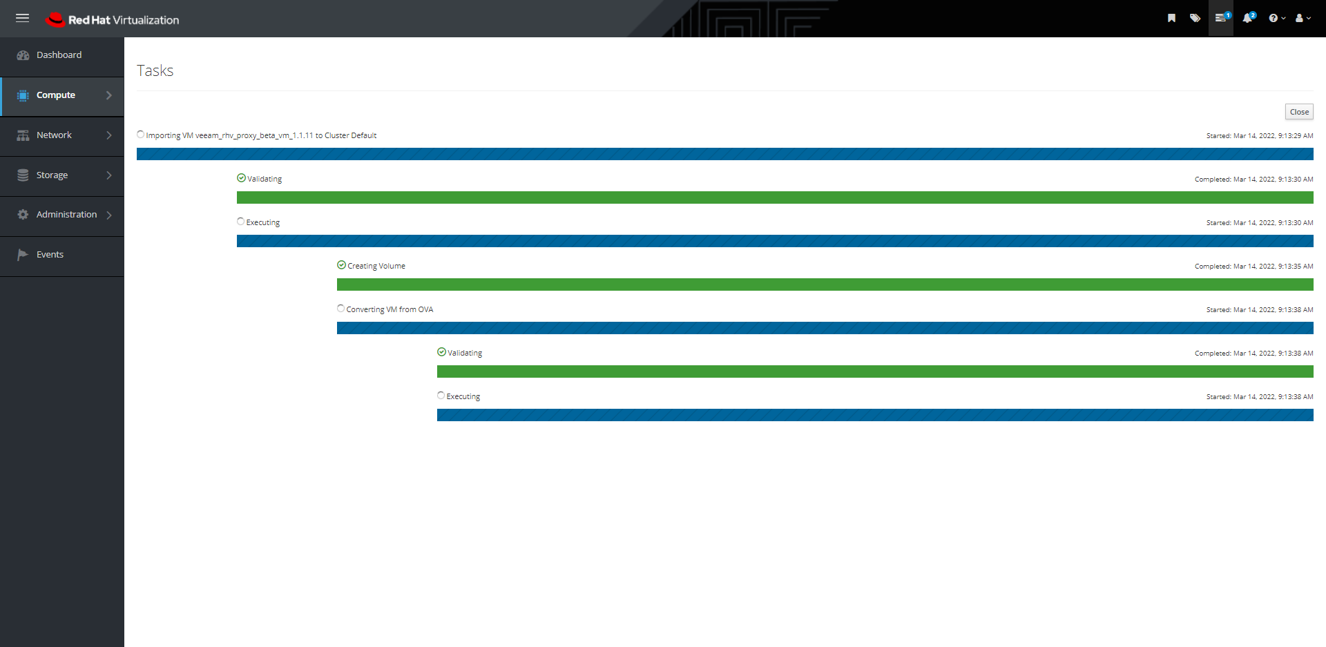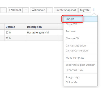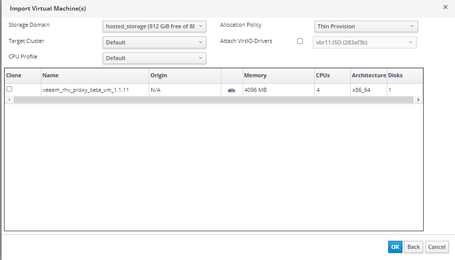 • import a VM from Veeam Backup for RHV disk image to RHV host.