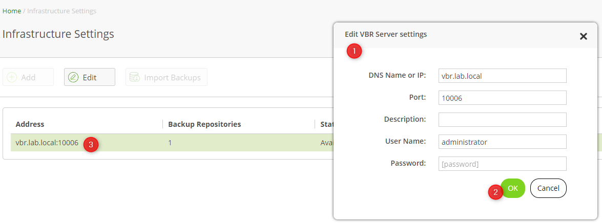 • You will see a login screen again, log in with the username veeam and the password you set.