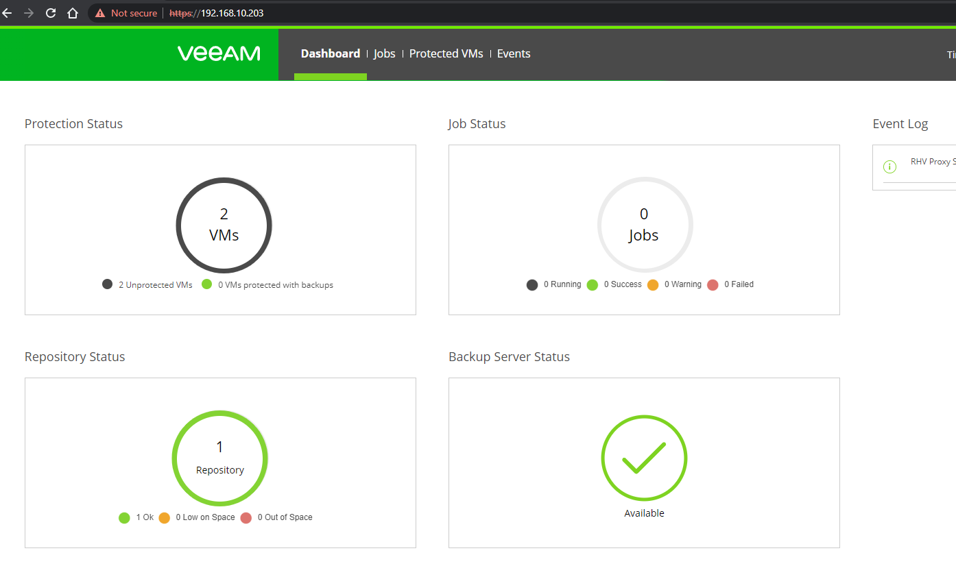 • Once that is all completed, navigate back to the dashboard and it should all be beautiful Veeam green.