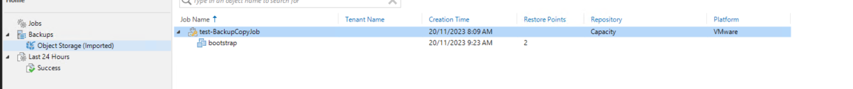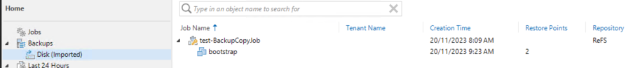 • What we looking for here is to see that Veeam has now detected backups in the repository that aren’t associated to any Tenant, What this means is Veeam will see it as a regular backup and import it