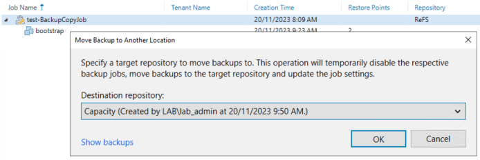 • Now that we have our object storage in place which will be used as the DTO target for the customer, we can start moving the backup Copy Jobs files across to the new repo.