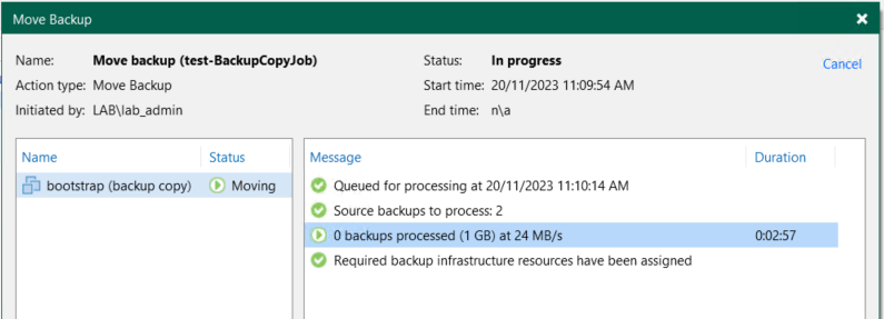 • To test that its all working, we can run the main Backup Job which will then initiate the Backup Copy Job