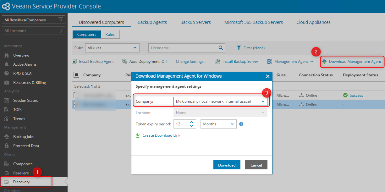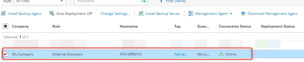 Once you have succesfully deployed the VSPC agent on the VBR server you should see it report back into the console and be listed under Discovered Computers, this may take a few minutes.