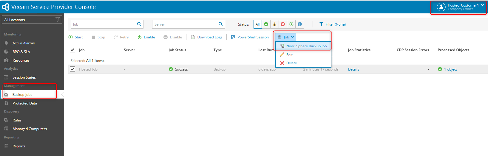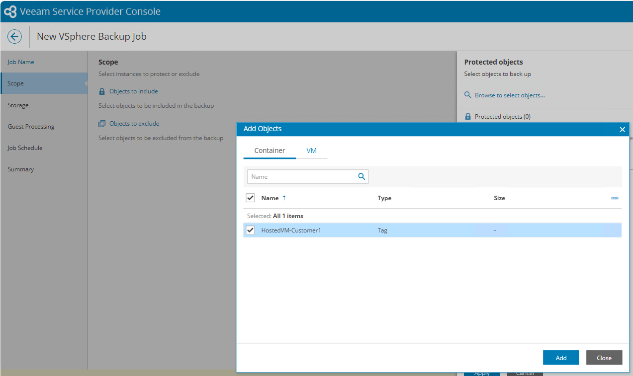 So, when we log in as the customer, we’ll get the option to create backup jobs on the VBR server to protect VMs that are tagged.