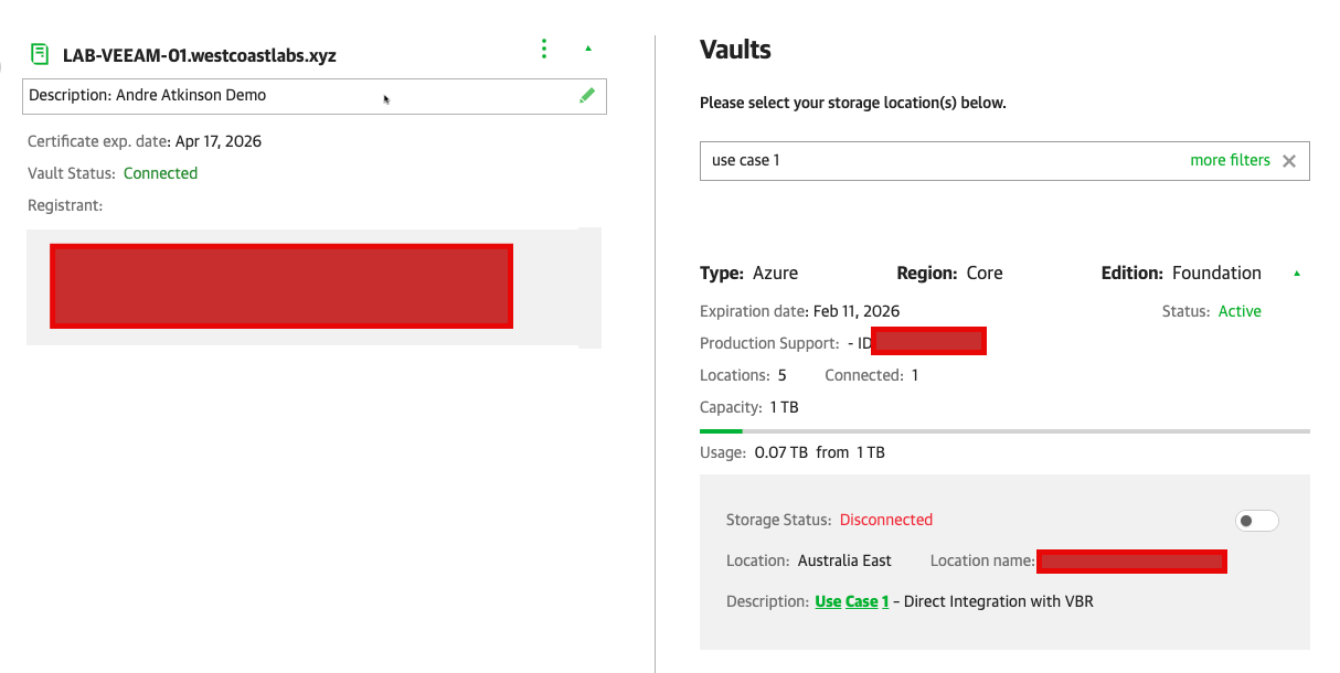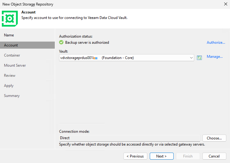 - Connect the VBR server to the Vault via the Veeam portal (steps above)