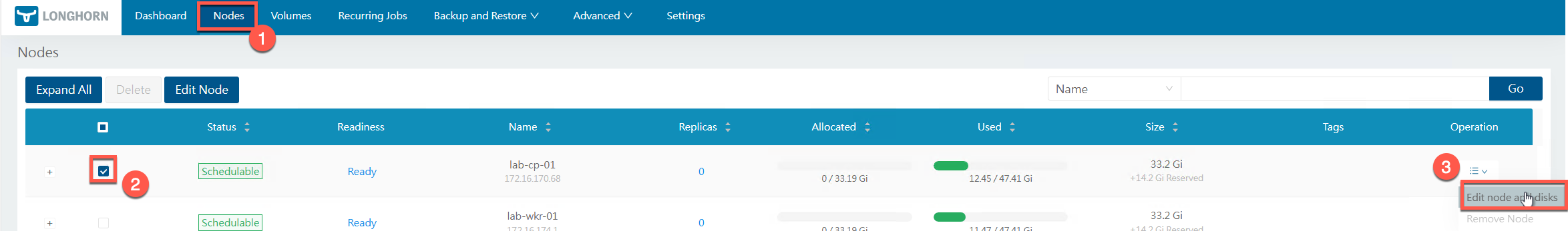 Now that we have our dedicated storage and load balancing set up, let’s configure Longhorn to use our new disks and expose its UI.