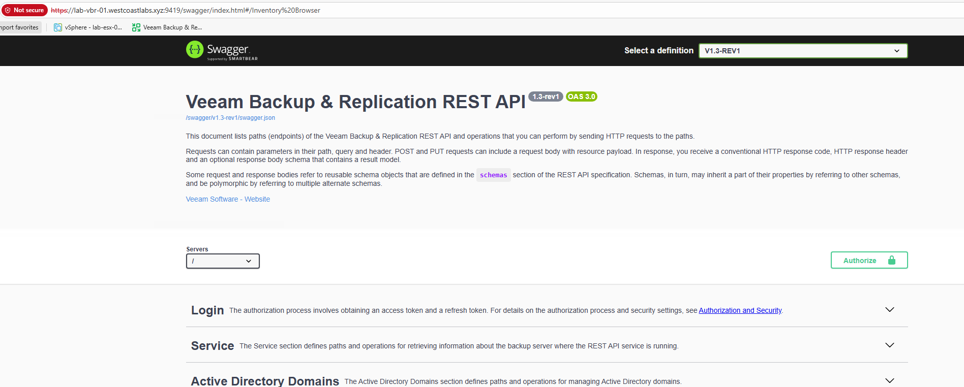 https://<your-vbr-server>:9419/api/swagger/ui/index.html - Accept the Certificate: If you’re using a self-signed certificate (common in lab environments), you’ll need to accept the security warning