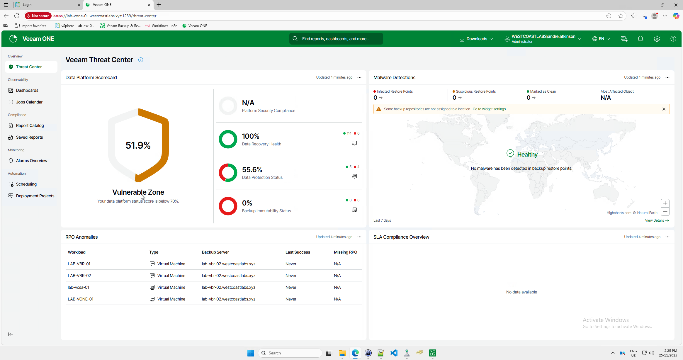 Usually, as a backup admin, you’d be managing multiple VBR servers across multiple sites or customers, and keeping an eye on them all can be a challenge. Have all my backups been successful? Have there been any alerts in the environment? Are we compliant? Has someone created a workload that I’m not protecting? All these questions, in a traditional world, would be pretty difficult to answer without a proper platform to assist.