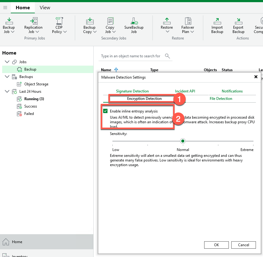 So what are these things I keep talking about? Well, Veeam performs inline (keyword here) entropy analysis as the data blocks are read during a backup. What this means is we’re basically leveraging some built-in AI and machine learning to scan the blocks as they pass through your Veeam proxy server. This does mean a small CPU impact, but essentially gives us the ability to detect any encryption-type events as we’d see the high level of change rate, extension changes, and just the massive amount of different blocks that are usually indicative of a ransom-type event.
