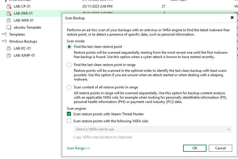 YARA scanning gives you surgical precision to hunt for specific indicators of compromise, while Threat Hunter provides comprehensive signature-based detection. Together, they ensure that when you need to restore from backup—especially after a ransomware incident—you’re restoring clean data, not reinfecting your environment.