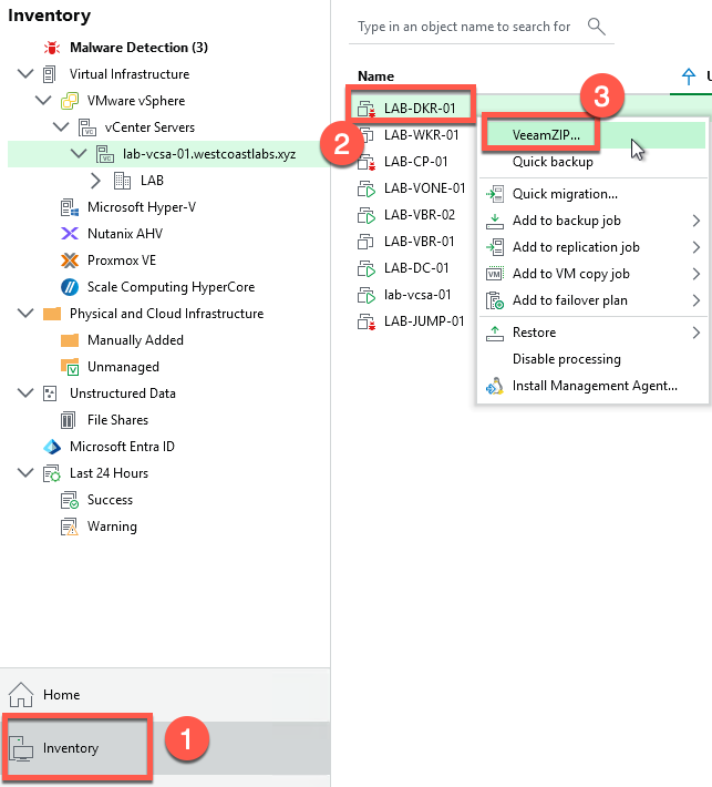 $vm = Find-VBRViEntity -Name "LAB-DKR-01"