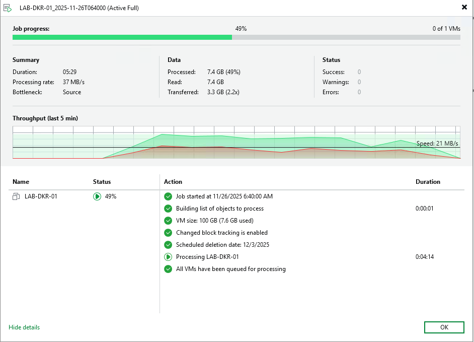 This isn’t just a copy or snapshot. VeeamZIP creates a proper VBK (Veeam Backup) file with all the features you’d expect: