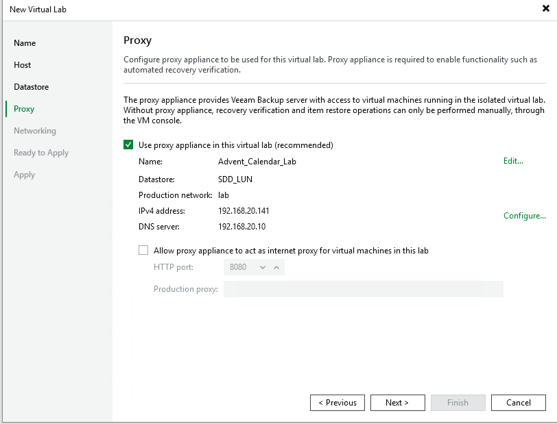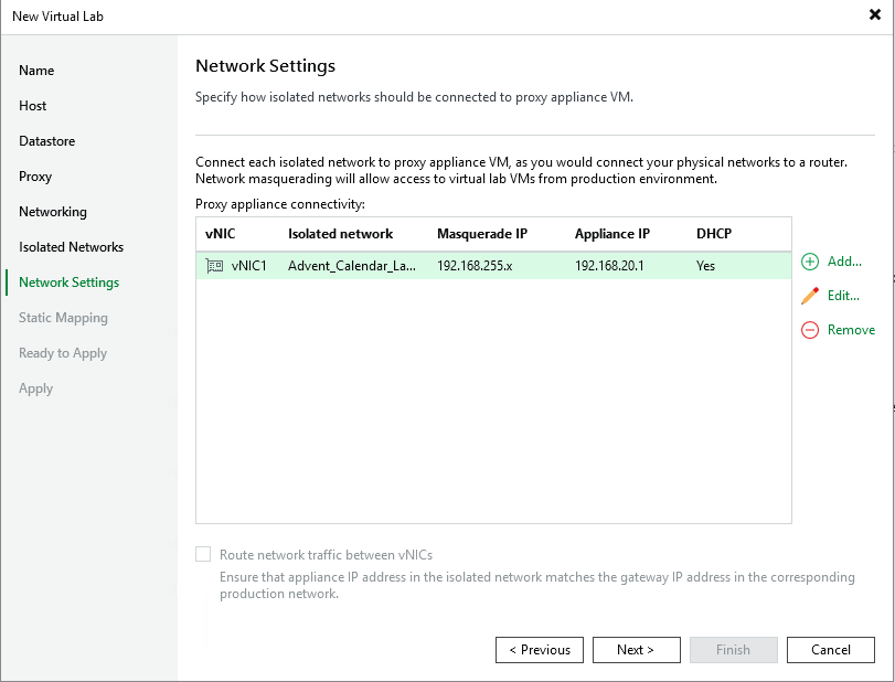 - By default only the VBR server will be able to reach into the isolated network, this is so that it can perform the required testing that it needs however you can add a static route here if you wish. the benefit here is that lets say you want to boot this up to test a SQL upgrade, well this will allow you to add additional routes in so that the DBAs can get to the isolated network and test their upgrades