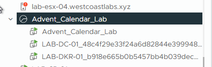 If we look inside vCenter, we can now see that our virtual lab VM powers on (which is connected to our isolated lab network), as well as the workloads within our Application Group starting to spin up.